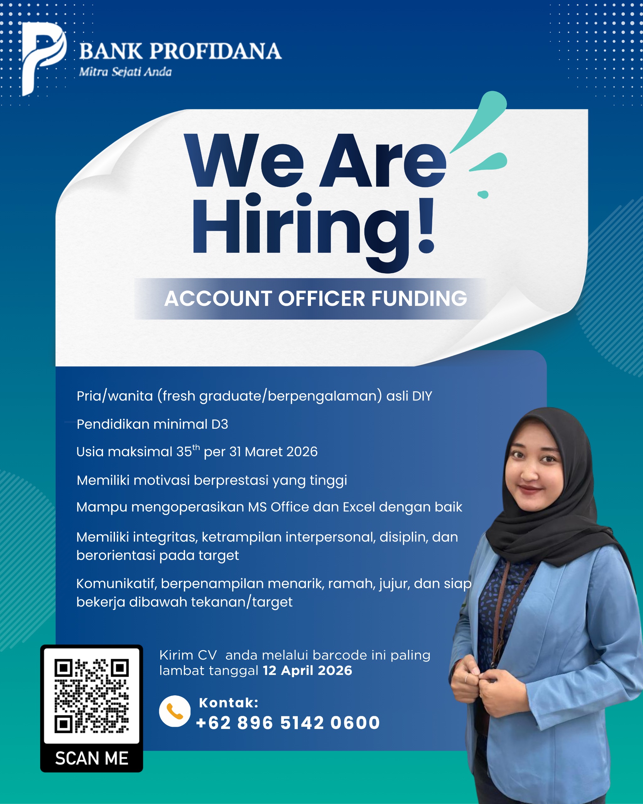 - Persiapkan berkas lamaran dengan kelengkapan, Scan QR Code yang ada pada Flyer Lowongan.